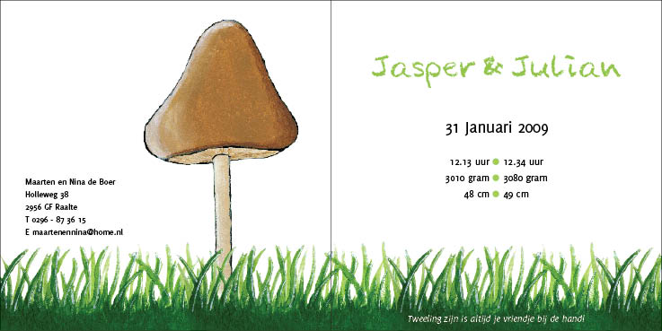 Ben je in verwachting van twee kindjes? Gefeliciteerd, jullie hebben dubbel geluk! Kijk hieronder eens naar de tweelingkaartjes.